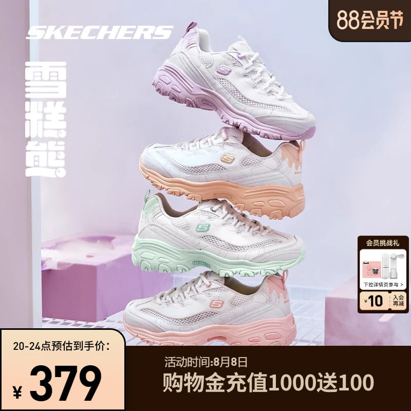 券 100元销量2000【徐梦洁同款】斯凯奇雪糕熊2023女鞋老爹鞋冰淇淋撞色透气熊猫鞋