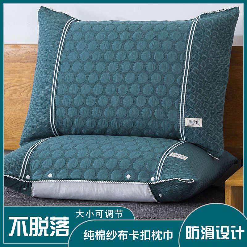 券 3元销量0纯棉魔术枕巾一对全棉纱布枕头巾高档半包裹按扣固定防滑成人枕套