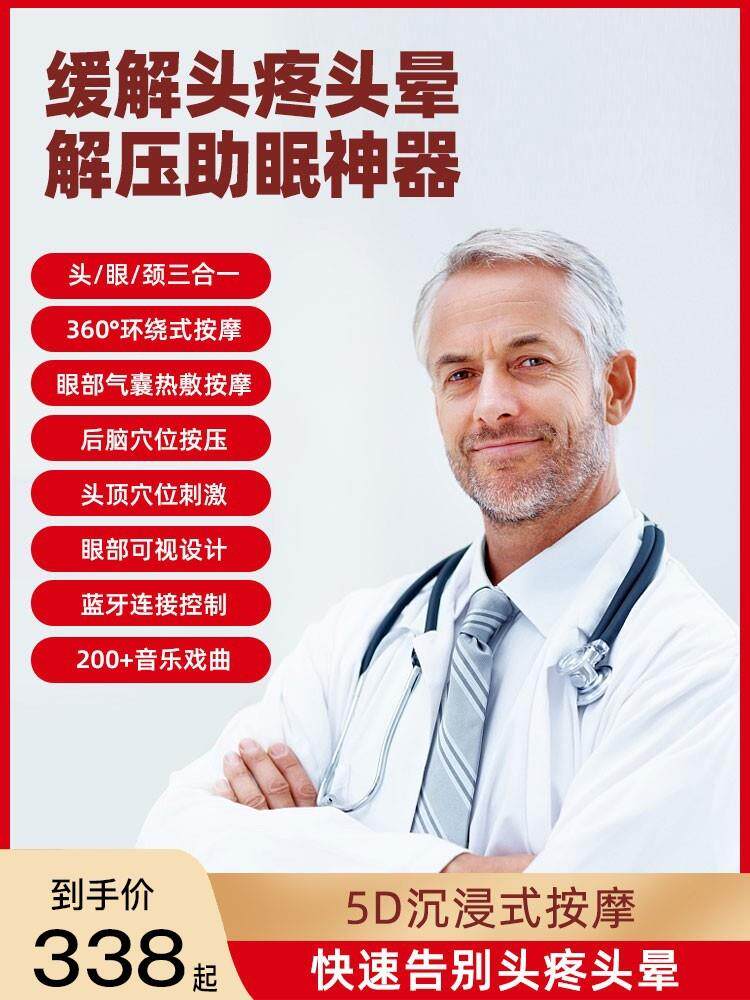 券 5元销量0磁疗头部按摩器太阳穴电动仪头疼神器经络疏通偏头痛揉捏睡觉礼物