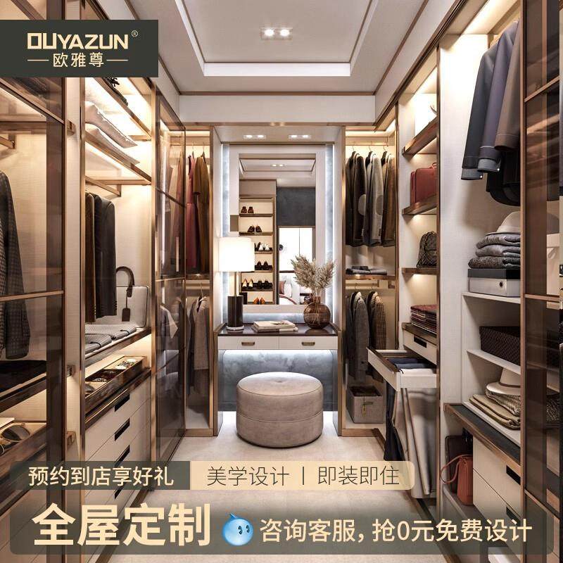 券 20元销量0欧雅尊 开放式全屋整体衣柜定制走入式u型衣帽间卧室玻璃衣橱定做