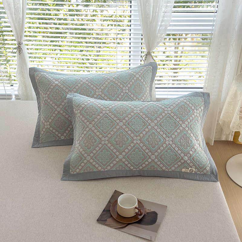 券 3元销量0纯棉枕巾一对全棉纱布枕头巾欧式高档半包裹按扣固定防滑成人枕套