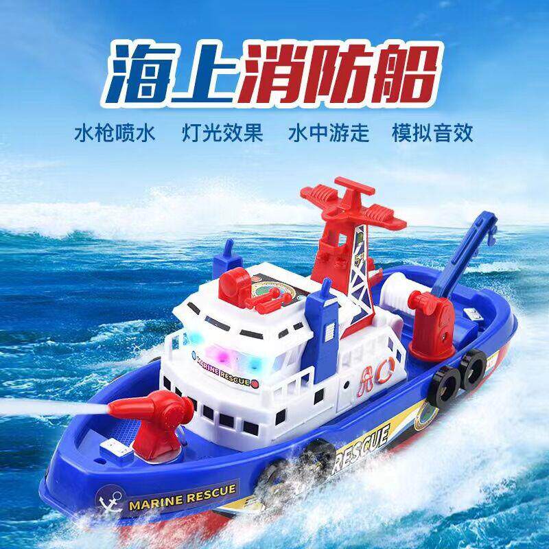 券 3元销量0电动海上消防船可下水会喷水 仿真轮船儿童洗澡戏水玩具3-6岁男孩