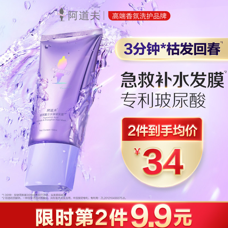 券 10元销量5000【王一博同款】阿道夫玻尿酸紫管发膜补水柔顺烫染干枯护发素女