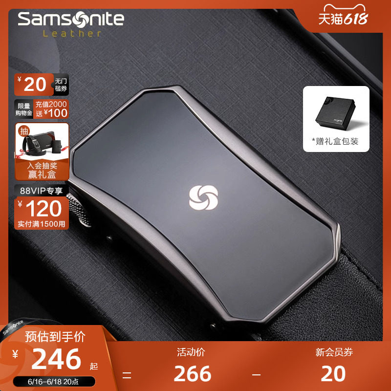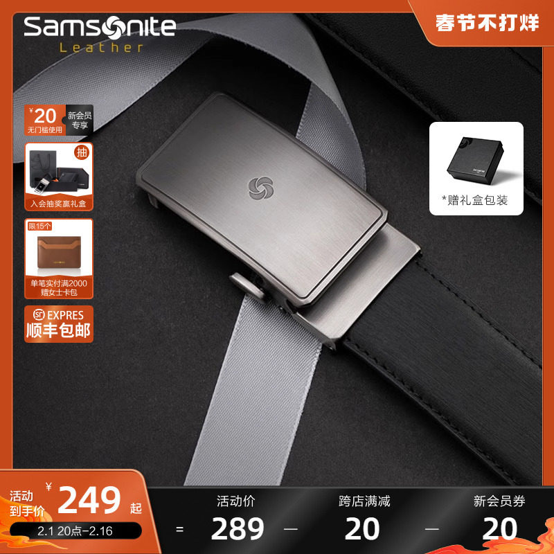 券 100元销量10新秀丽皮带男士自动扣皮质腰带 商务百搭男款男式裤带腰封礼盒TM1