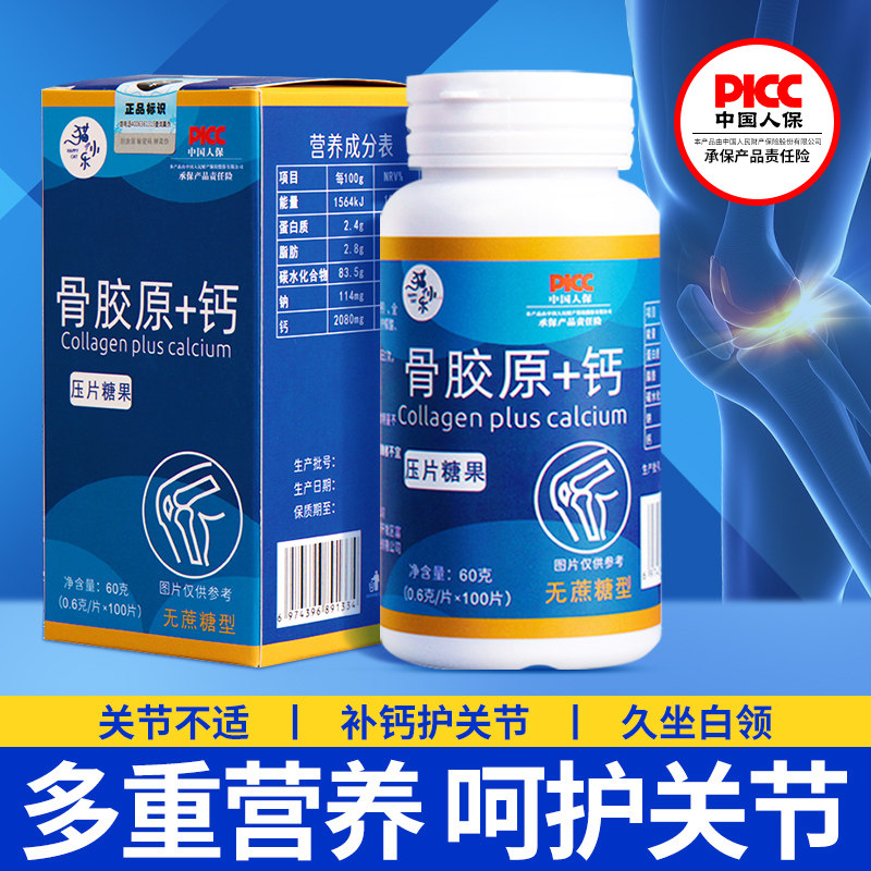 券 5元销量100骨胶原蛋白钙片氨糖咀嚼片中老年成年补钙非护关节疼痛官方旗舰店