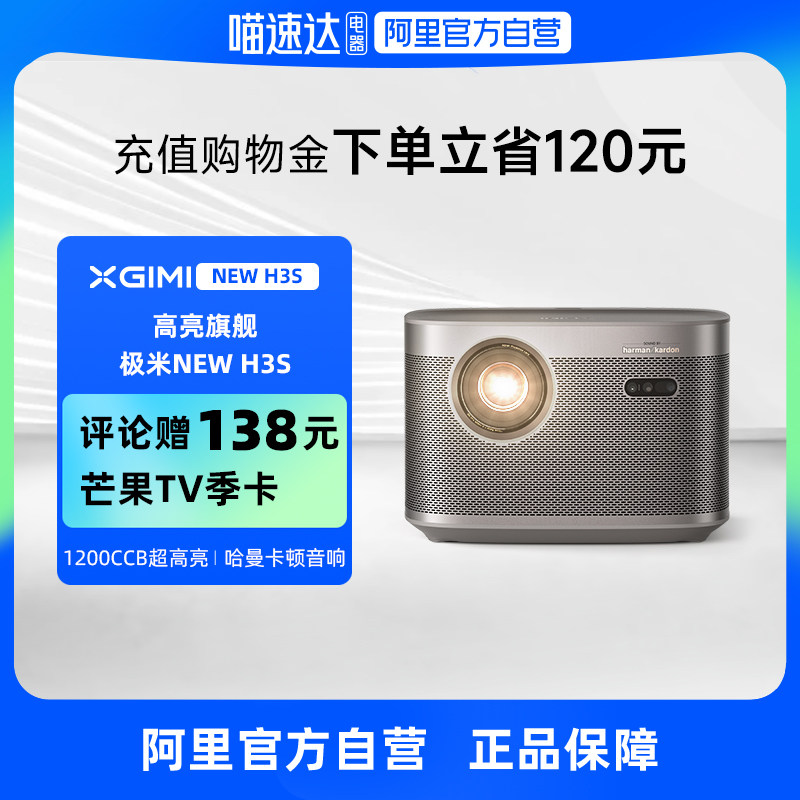 券 3310元销量13【阿里官方自营】极米NEW H3S投影仪家用1080P高清高亮度超清智能小型投影机卧室客厅3D百吋大屏