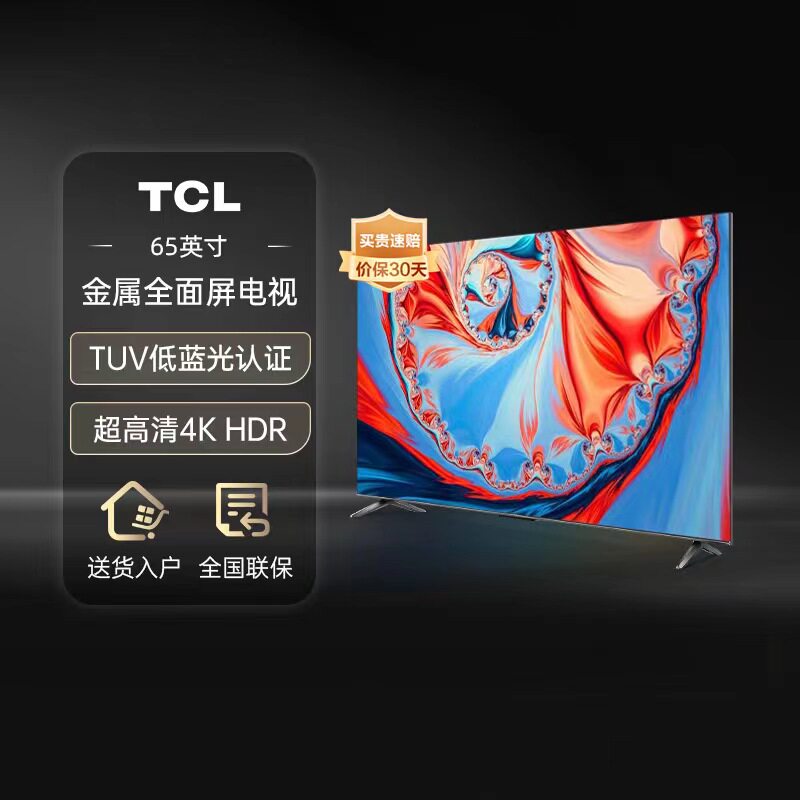 券 400元销量0【阿里官方自营】TCL 65寸 4K智能超薄语音全面屏平板电视