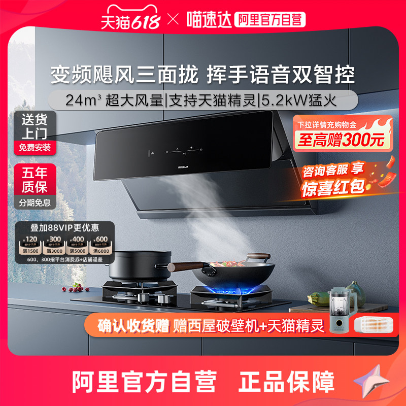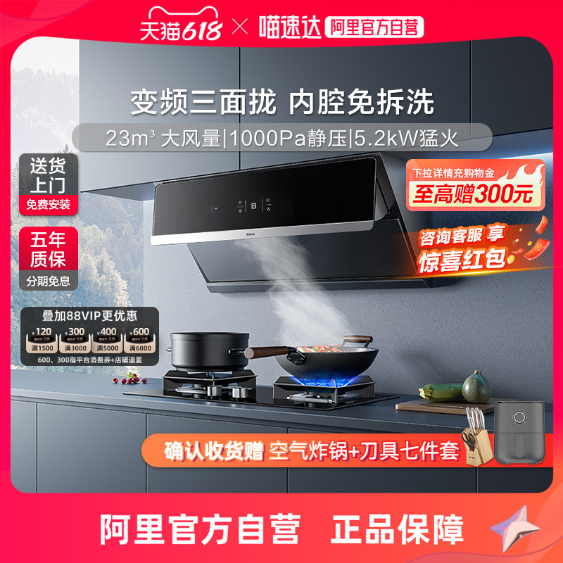 券 250元销量1【阿里官方自营】王一博同款老板28X6ST+57B5X大吸力智能烟灶套装