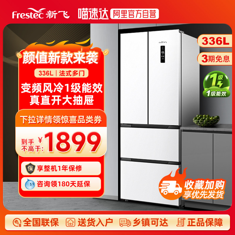 券 300元销量30新飞336L法式多门风冷无霜变频一级家用节能超薄四门四开门电冰箱