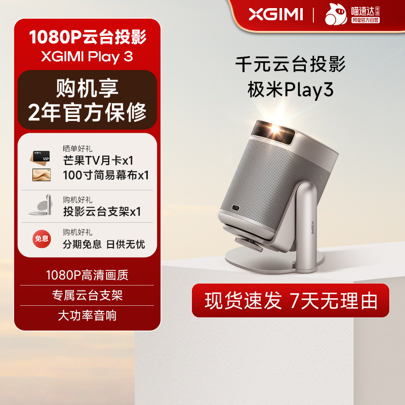 券 2800元销量1000【阿里官方自营】极米Play3云台投影仪家用1080P全高清智能便携小型投影机手机投屏户外娱乐露营大屏家庭影院