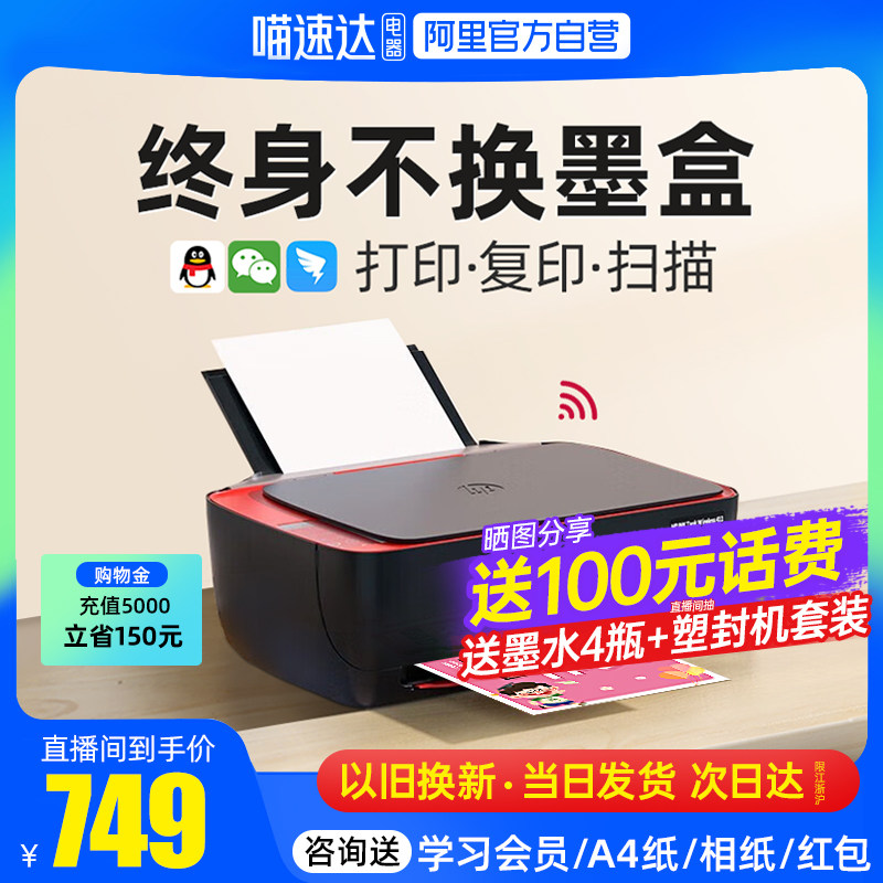 券 500元销量0【阿里官方自营 】hp惠普tank411彩色墨仓打印机家用学生小型复印扫描一体机办公专用tanK519原装连供无线