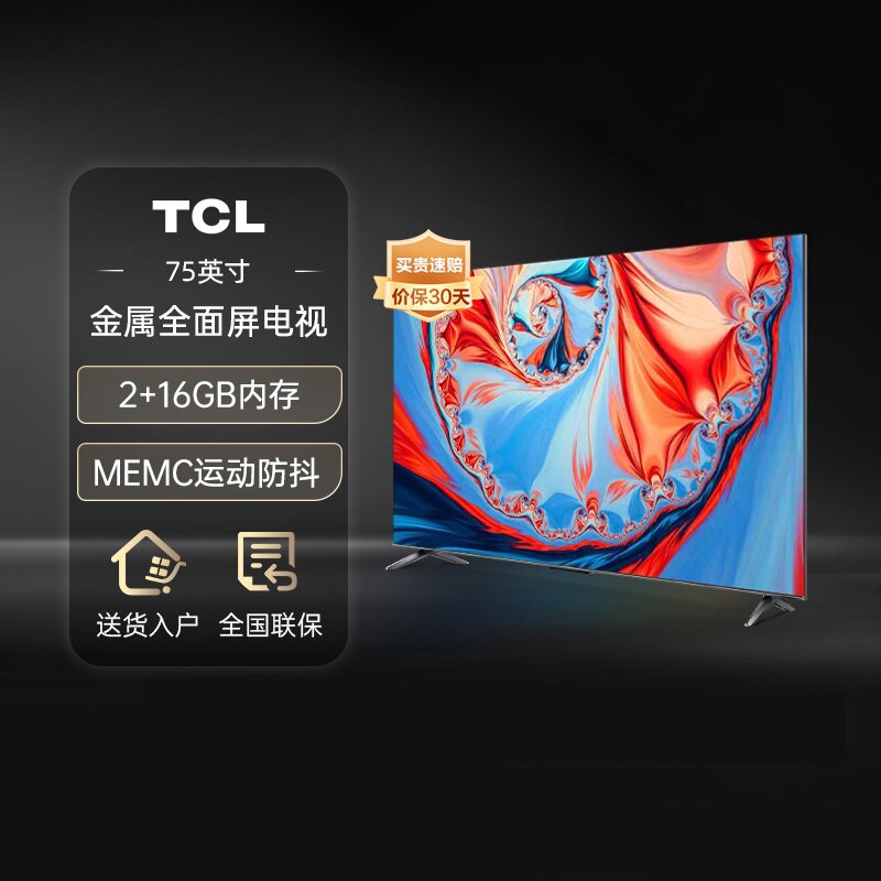 券 450元销量36[阿里官方自营]TCL电视75英寸4K高清智能语音全面屏平板电视