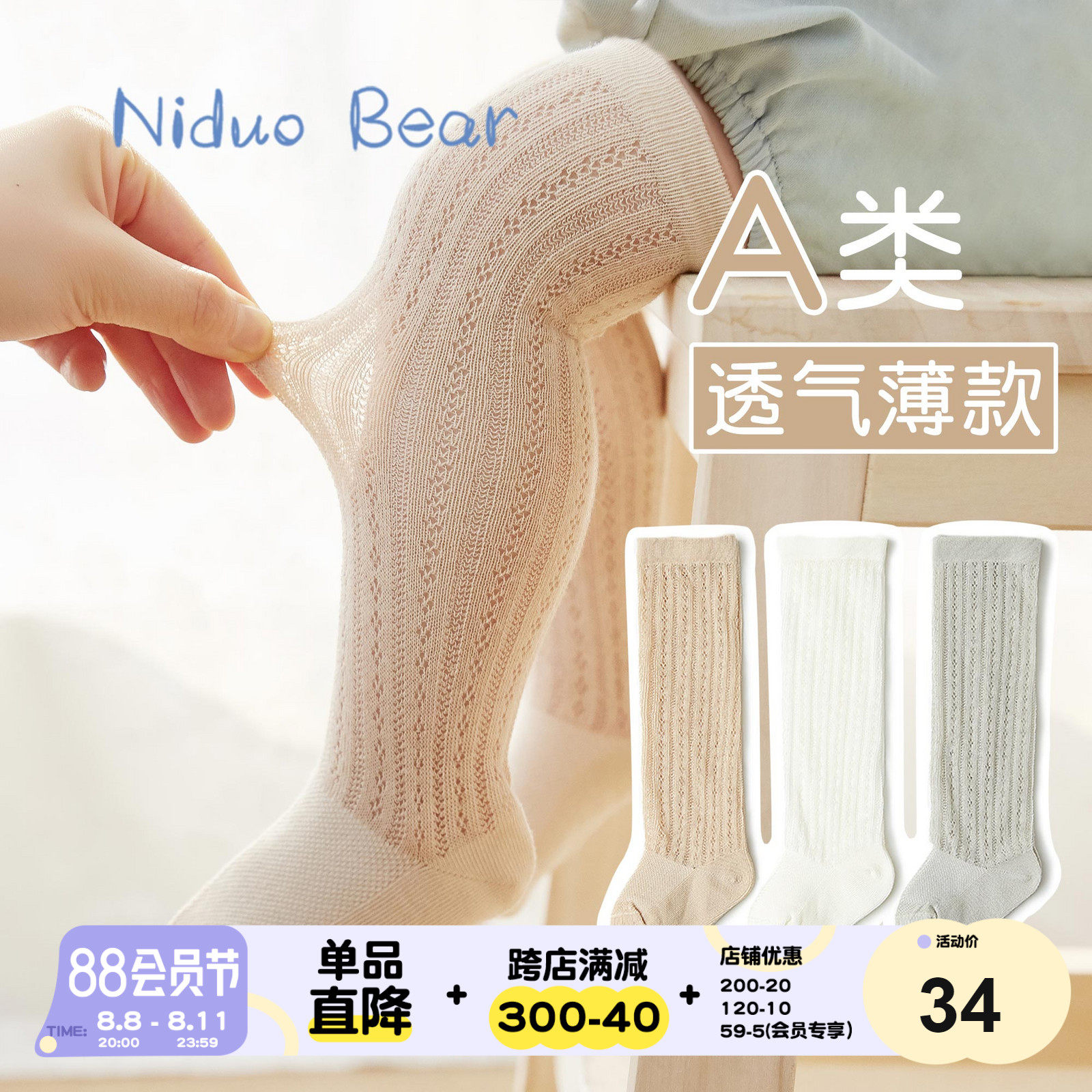 券 4元销量3000尼多熊婴儿长筒袜夏季薄款棉袜过膝袜新生儿宝宝袜防蚊长腿不勒脚