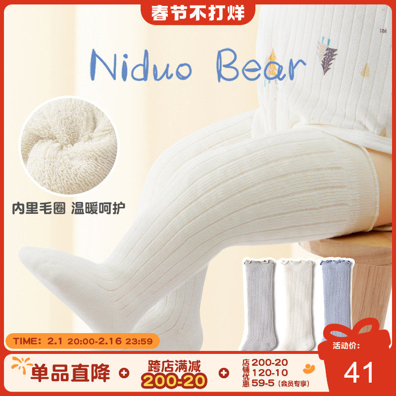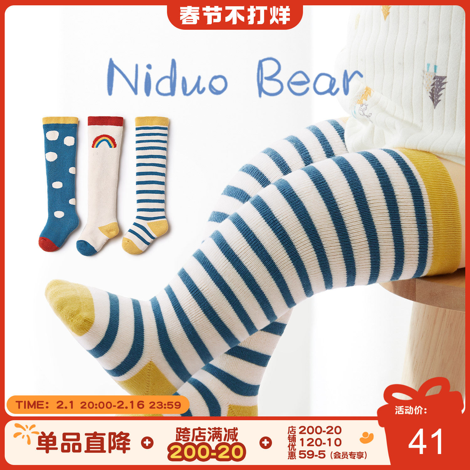 券 5元销量50尼多熊婴儿长筒袜冬加厚棉袜新生儿过膝袜保暖毛圈袜宝宝护腿长袜