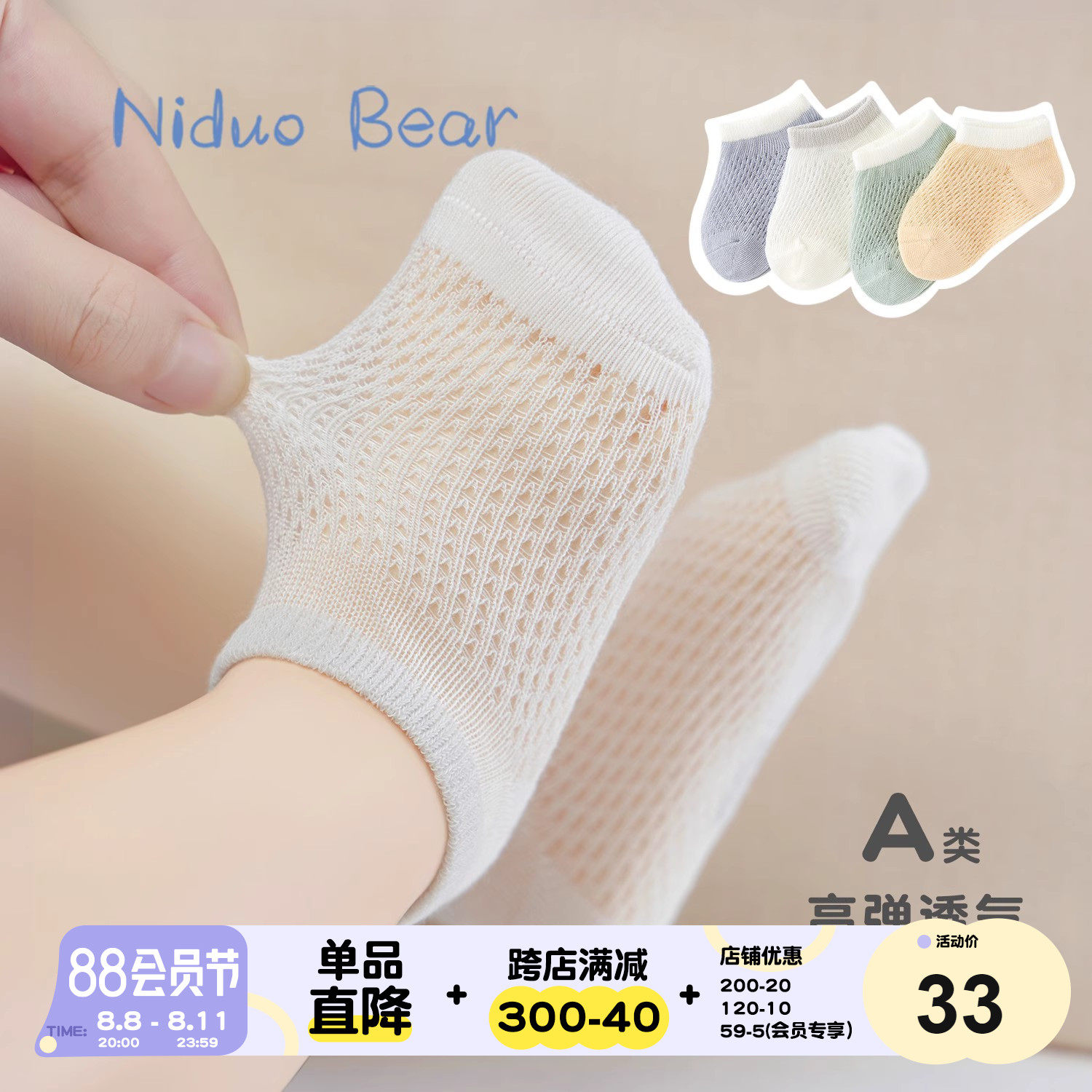 券 4元销量9000尼多熊宝宝袜子夏季薄款透气网眼婴儿袜白色船袜儿童袜短筒男女童