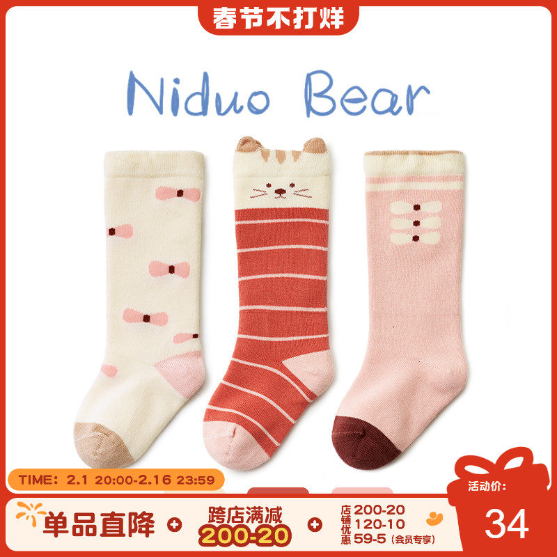 券 10元销量11尼多熊婴儿袜子秋冬棉袜松口卡通女童长筒袜春秋无骨宝宝袜不勒脚