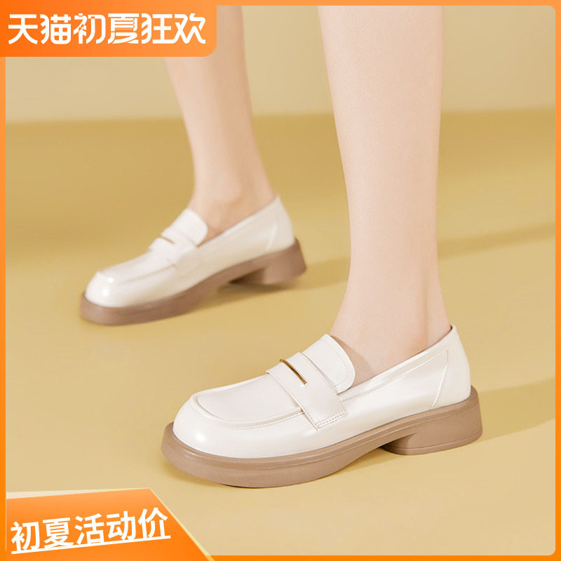 券 30元销量0卓诗尼2023年秋款新款圆头粗跟百搭今年流行的一脚蹬女鞋乐福鞋女