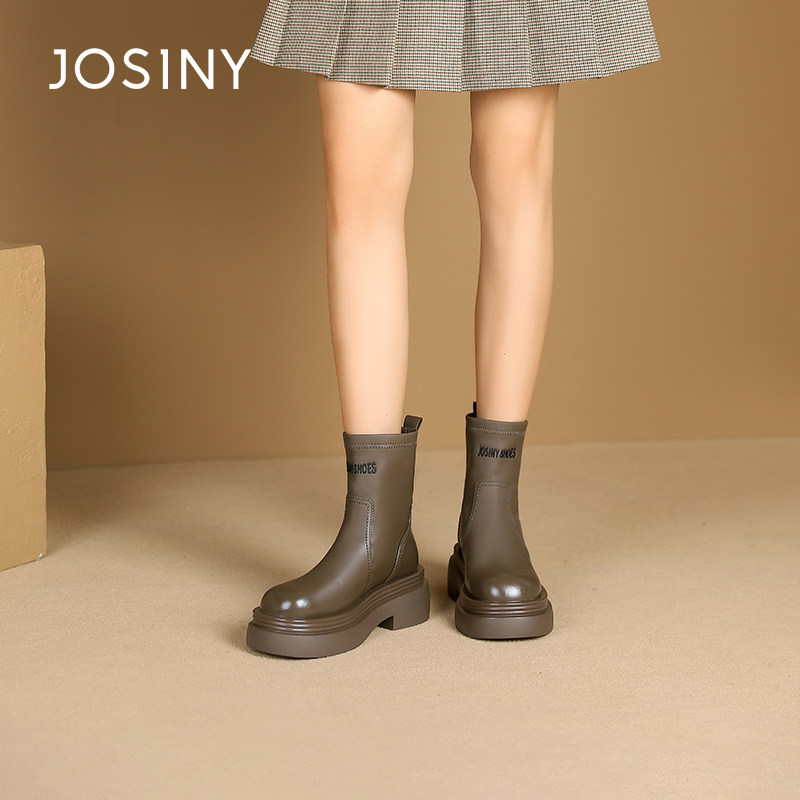 券 50元销量2卓诗尼女鞋短靴2023秋款乐福鞋女切尔西新款靴子线下专柜商场同款