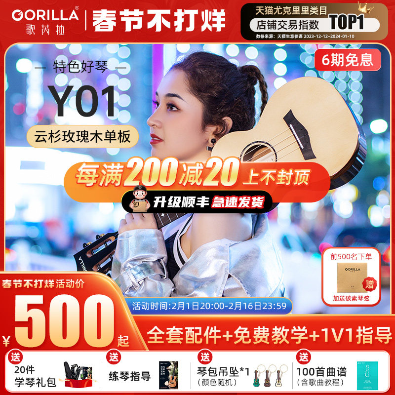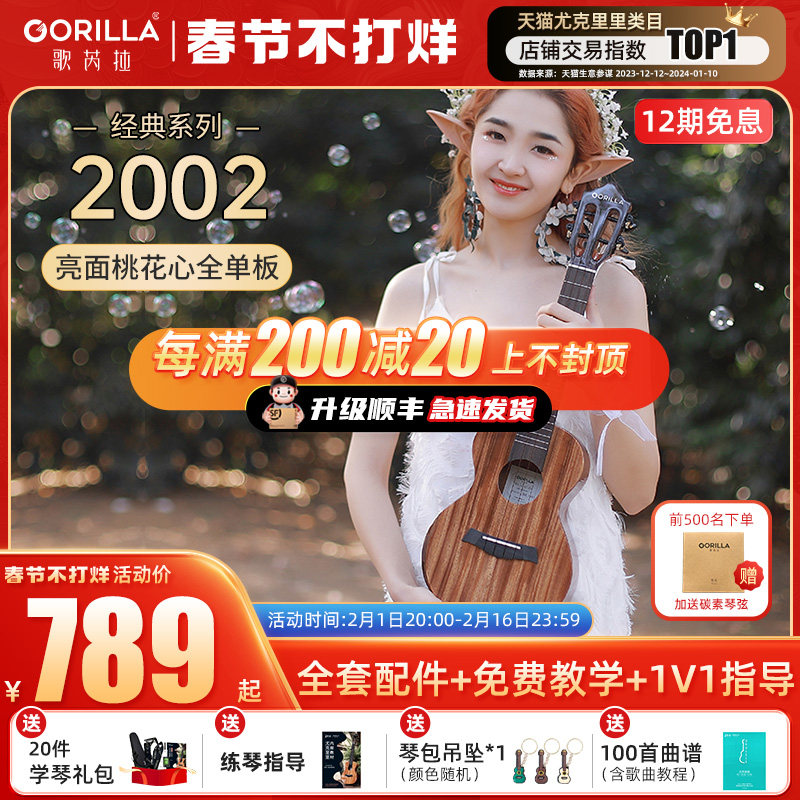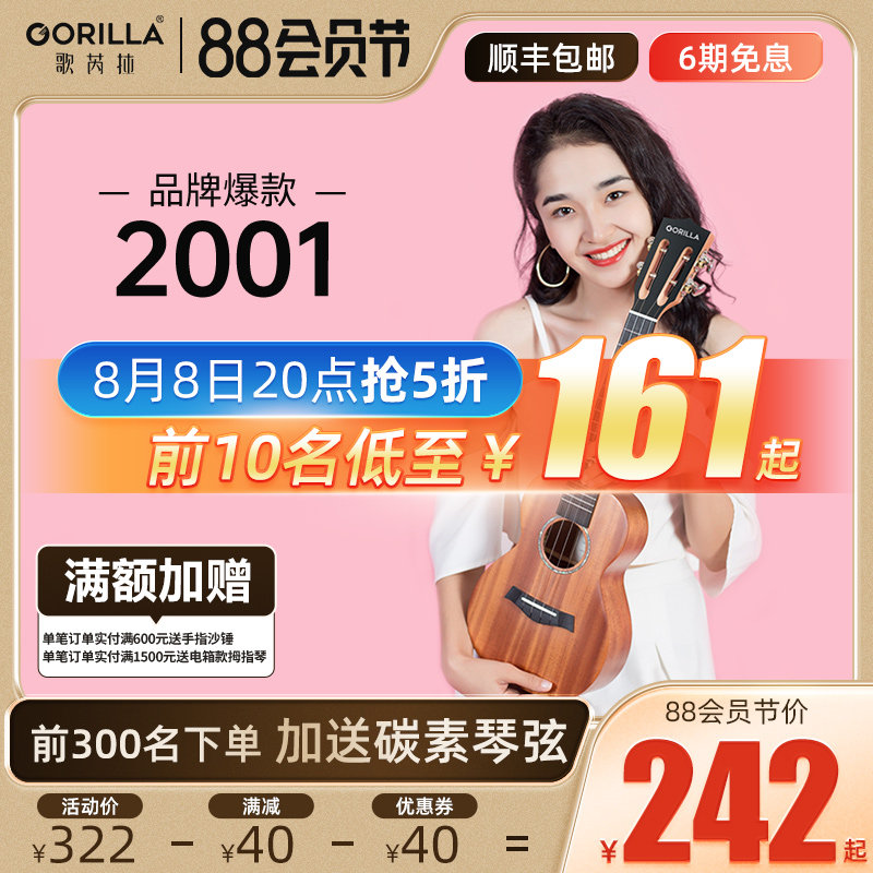 券 70元销量3歌芮拉gorilla乌克丽丽尤克里里单板男26寸少女初学者入门ukulele