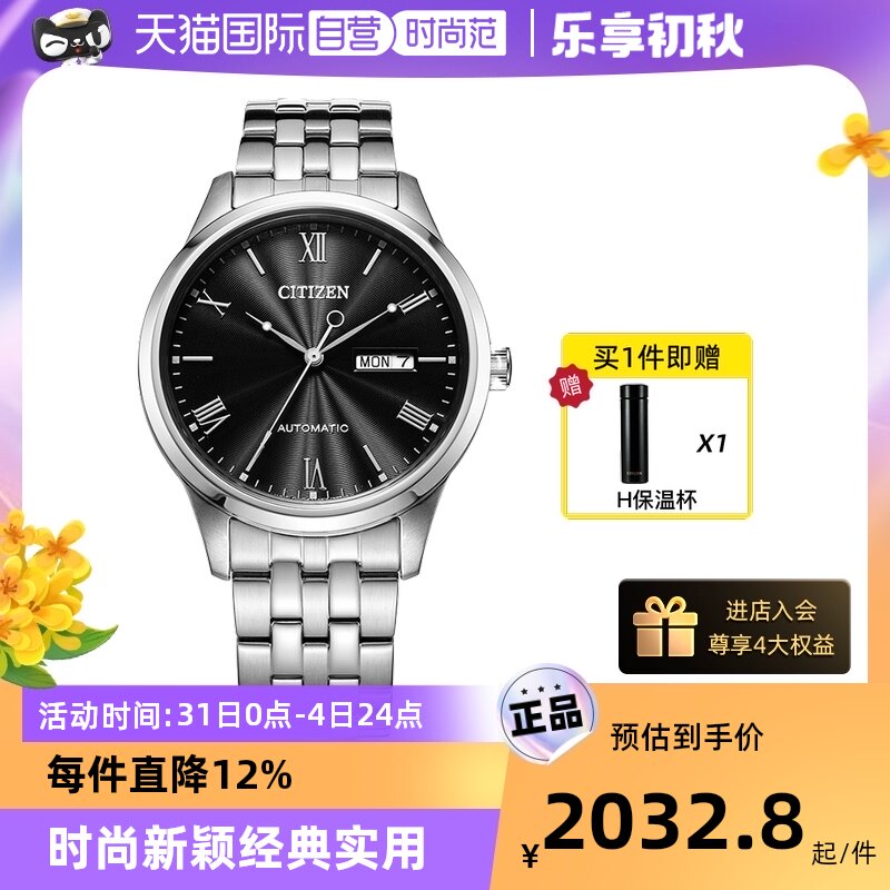 券 200元销量5【自营】西铁城全自动机械手表男士钢带日韩腕表NH8350-59BB