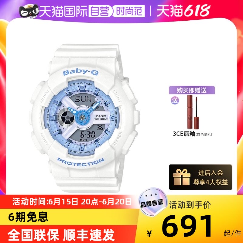 券 150元销量65【自营】Casio卡西欧Baby-G运动防水ins风学生哆啦A梦女表BA110BE