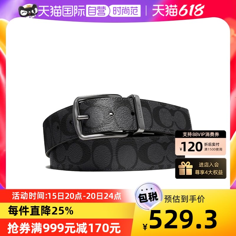 券 120元销量300【自营】COACH/蔻驰男士腰带商务休闲双面真皮针扣皮带正品送礼物