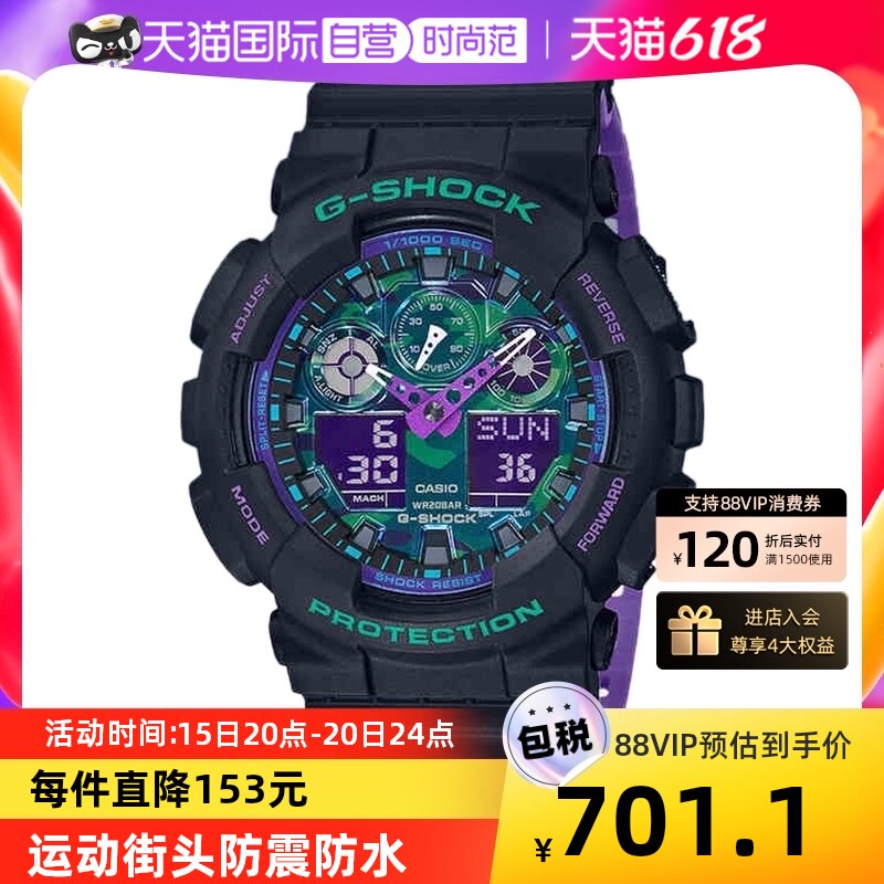 券 150元销量1【自营】Casio卡西欧运动手表石英腕表学生潮流男表 GA-100BL-1A