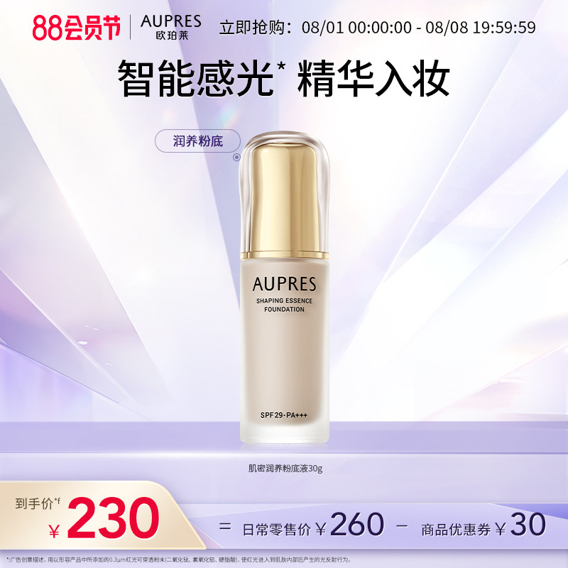 券 40元销量400【618立即抢购】欧珀莱紧颜滋养粉底液隔离遮瑕轻薄细腻贴合不易