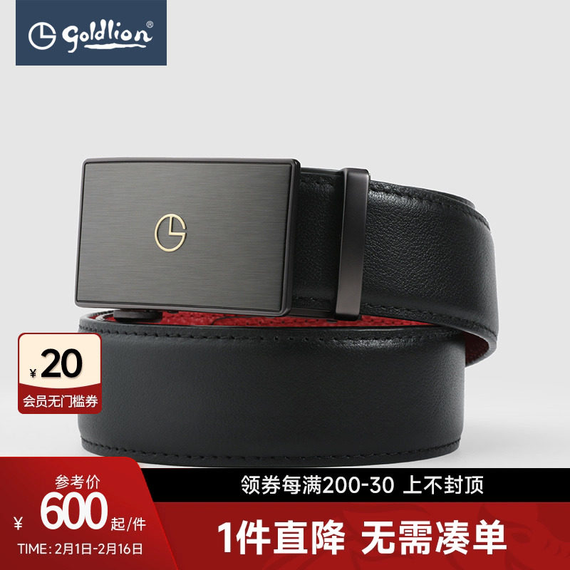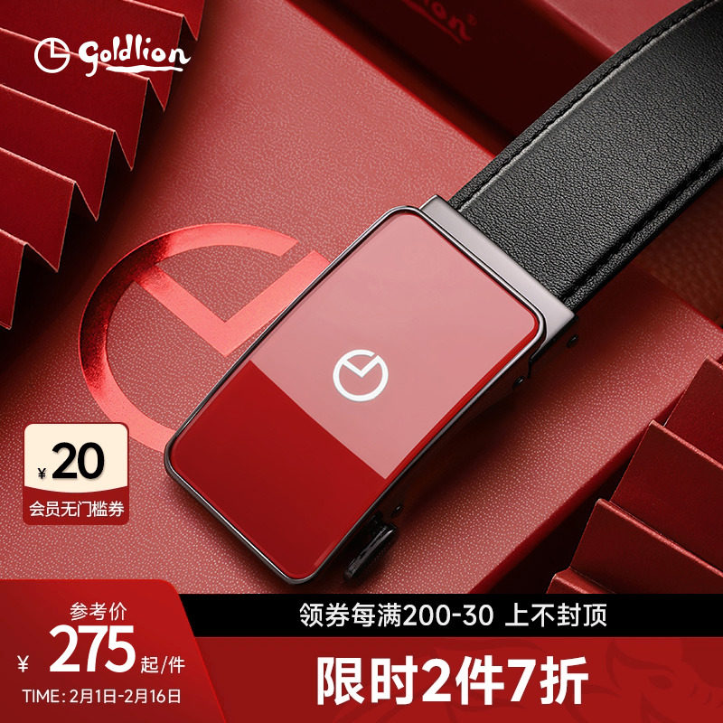 券 95元销量500金利来男皮带真皮新款红腰带本命年自动扣商务休闲裤带