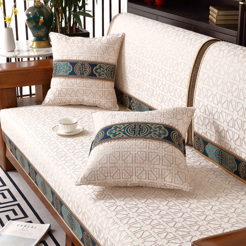 券 3元销量700新中式实木沙发垫四季通用布艺防滑全棉坐垫子简约沙发套罩巾靠背