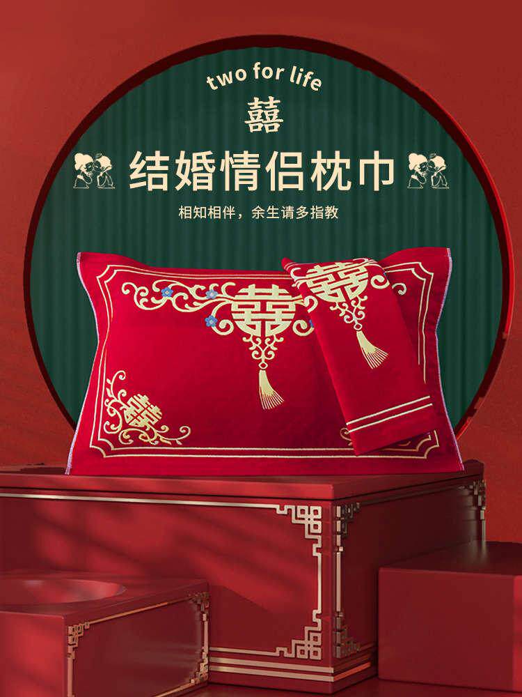 券 3元销量0红色浴巾枕巾结婚陪嫁一对毛巾情侣婚庆回礼盒套装伴手礼用品大全