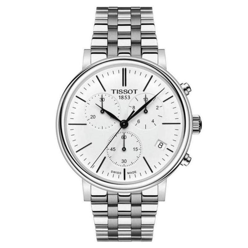 券 50元销量0天梭男手表Tissot瑞士石英计时卡森钢带礼物腕表T1224171101100