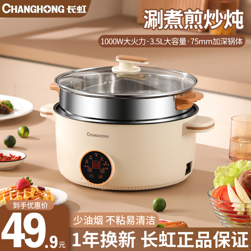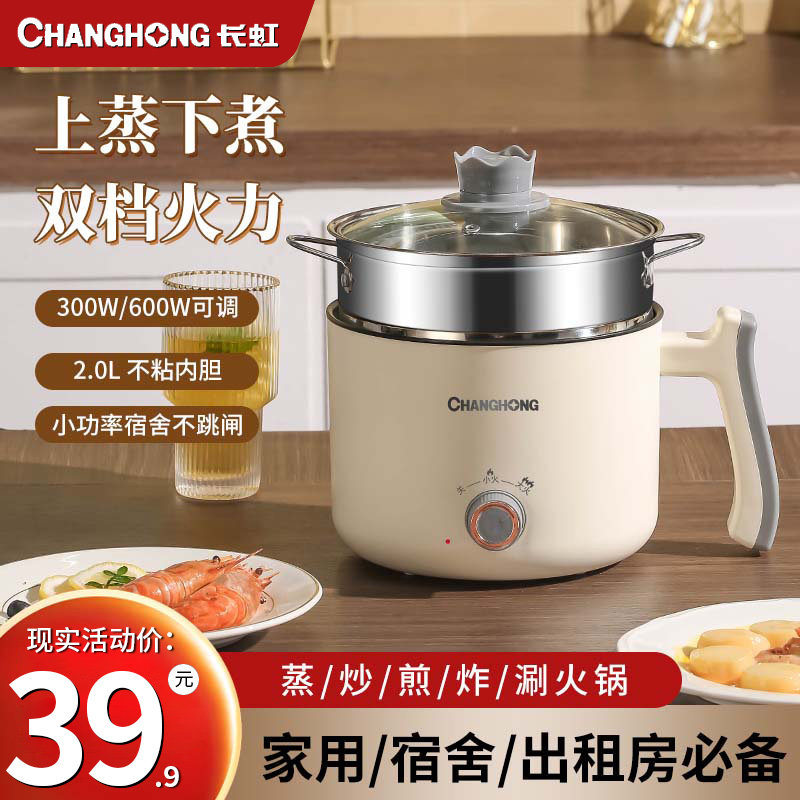 券 20元销量100长虹电煮锅多功能一体电火锅宿舍学生锅煮面小电锅家用电炒菜炒锅