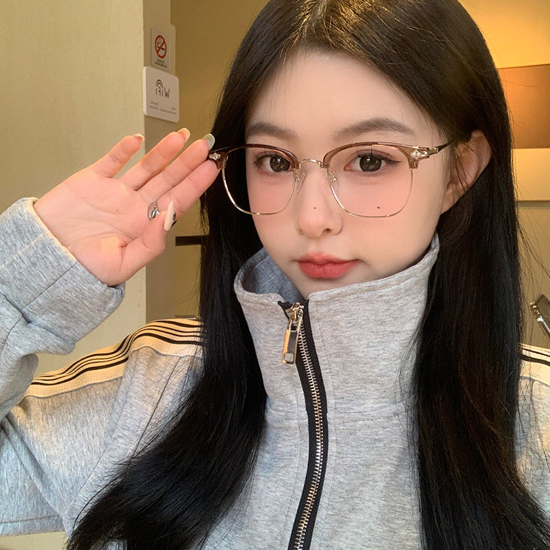 券 1元销量500斯文超轻半框眼镜近视女专业可配度数冷茶色素颜复古高级感眼睛架