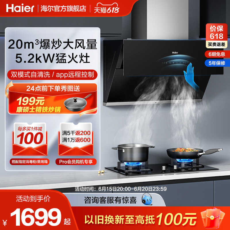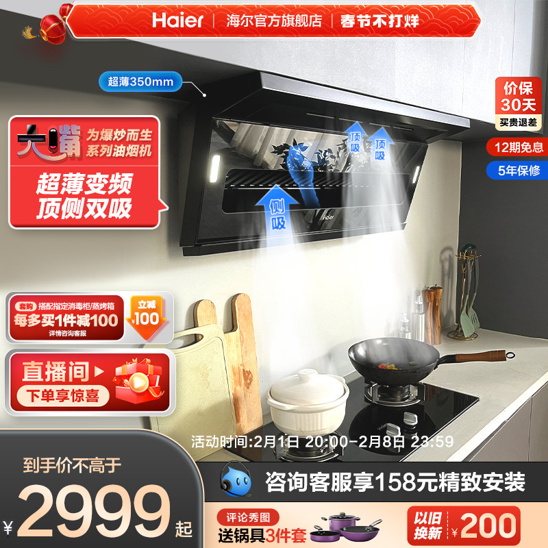 券 200元销量200【超薄速吸】海尔抽油烟机燃气灶套装大嘴顶侧双吸变频家用烟灶具