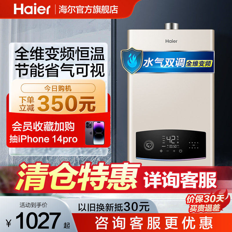 券 400元销量89海尔燃气热水器家用天然气恒温洗澡13L16升TM3智能变频节能强排式