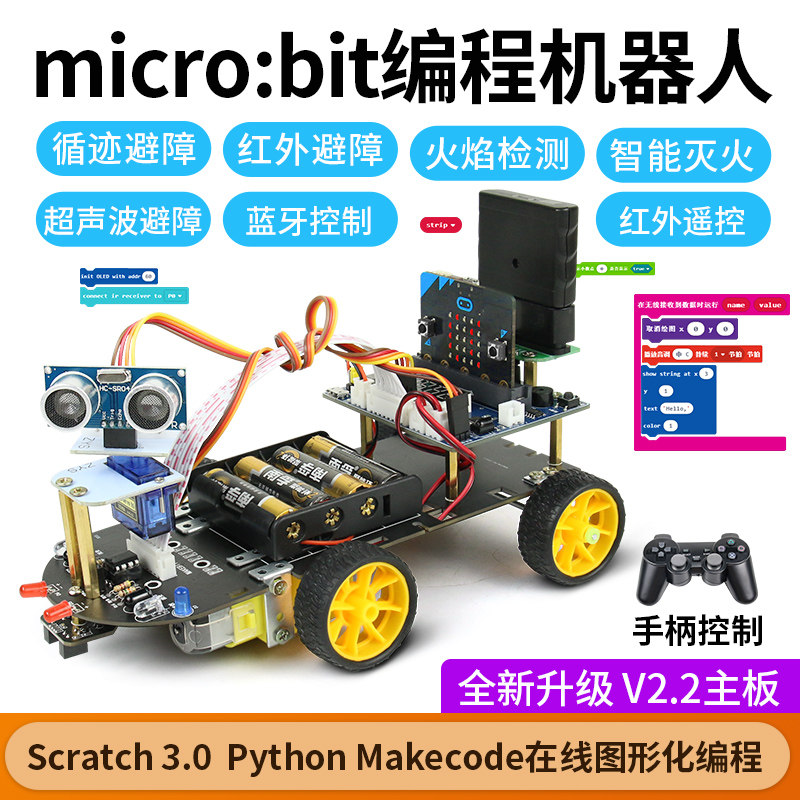 券 5元销量0亚博智能 Micro:bit小车套件Microbit编程教育遥控v2机器人python