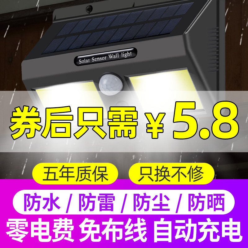 券 2元销量0太阳能灯家用人体感应户外花园庭院灯新农村路灯防水壁灯室外电灯