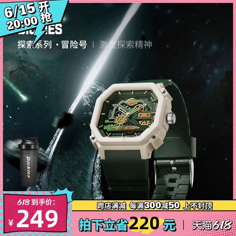 券 170元销量92Dickies旗舰店手表男学生潮流探索系列机械镂空概念石英腕表CL436