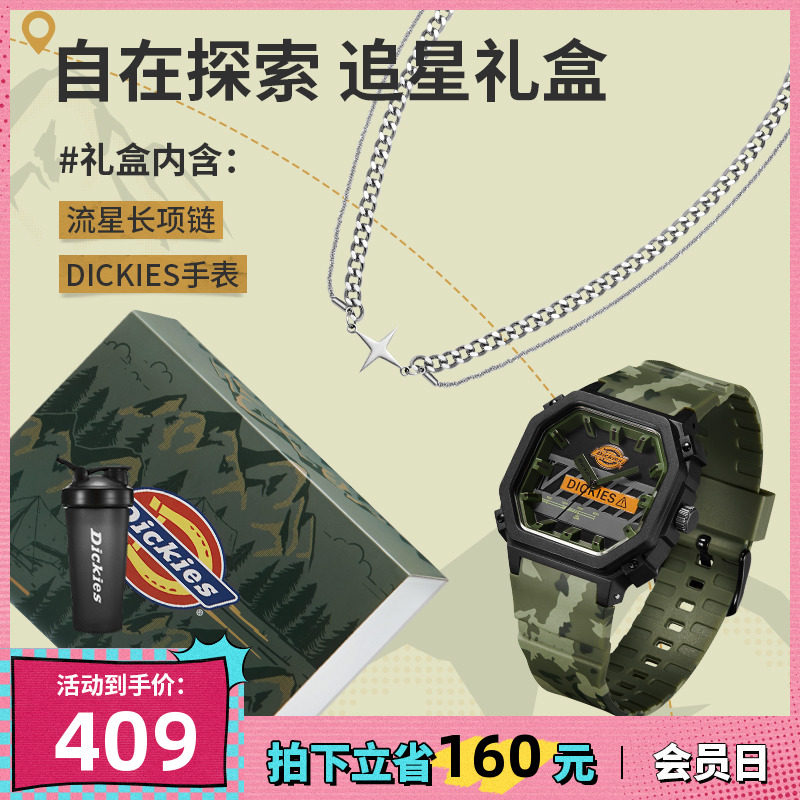 券 160元销量1Dickies旗舰店手表男迷彩撞色户外运动石英表礼盒装学生潮流CL449