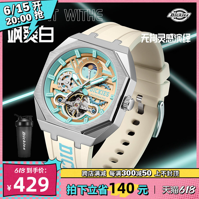 券 100元销量50Dickies旗舰店机械表正品女士全自动学生多功能潮流手表男CL-485