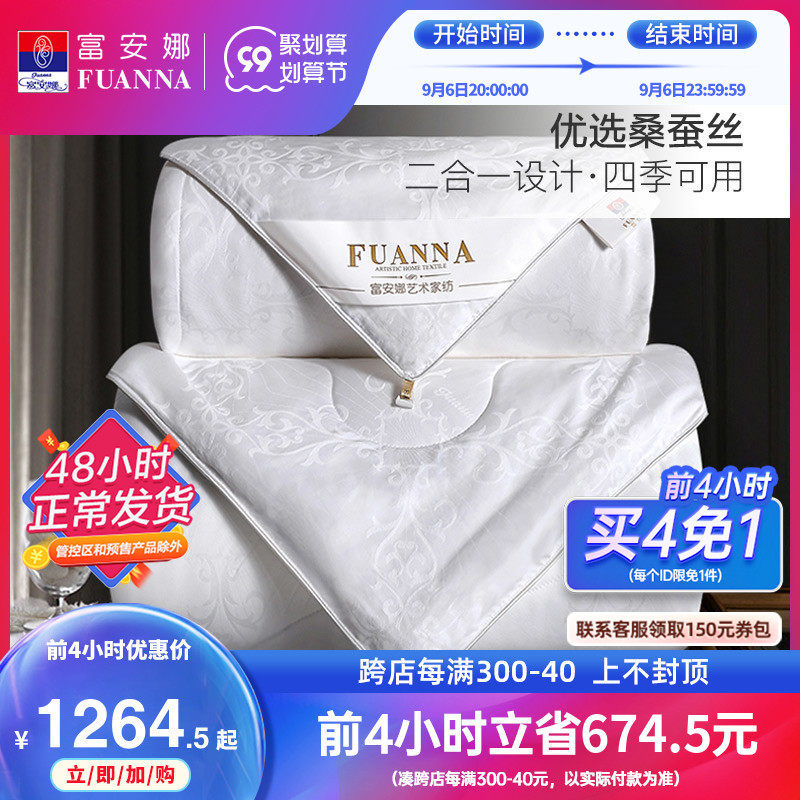 券 10元销量500富安娜蚕丝被桑蚕丝四季通用被芯空调被二合一子母被夏凉被冬被子