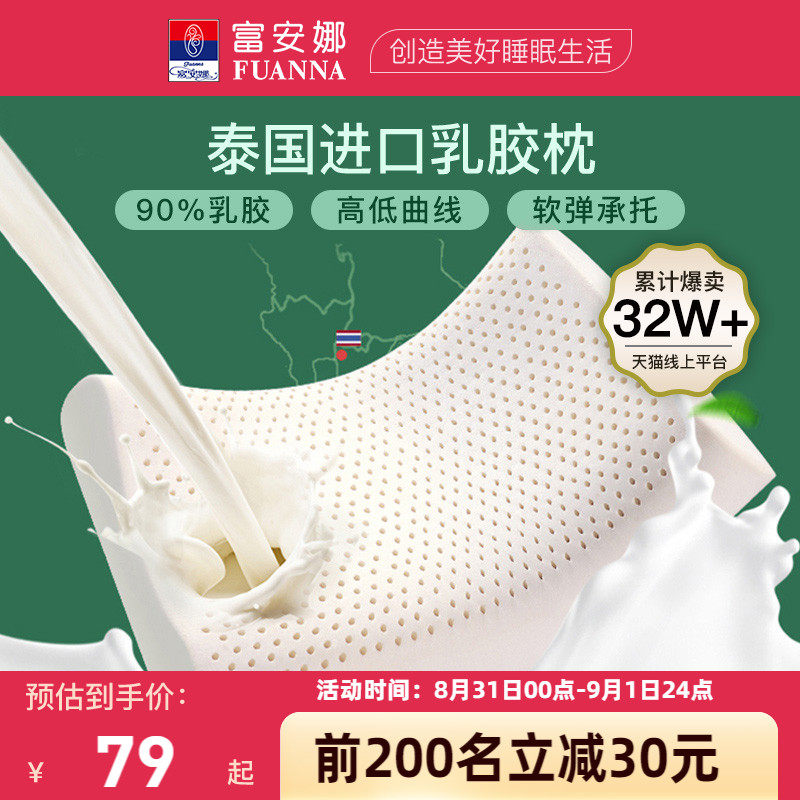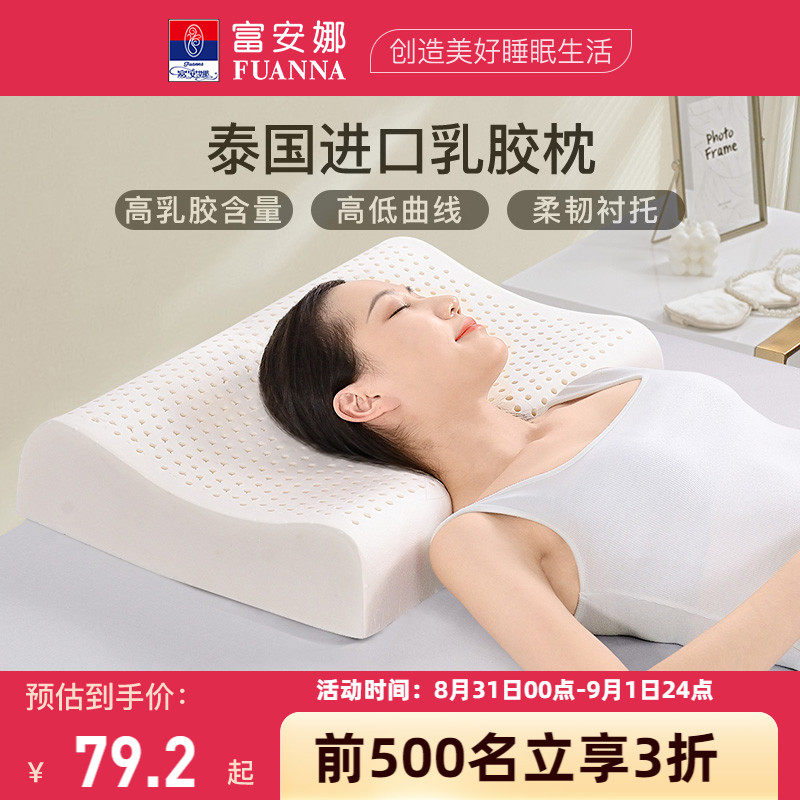 券 20元销量100富安娜乳胶枕头护颈椎学生宿舍睡眠专用成人儿童泰国天然乳胶枕芯