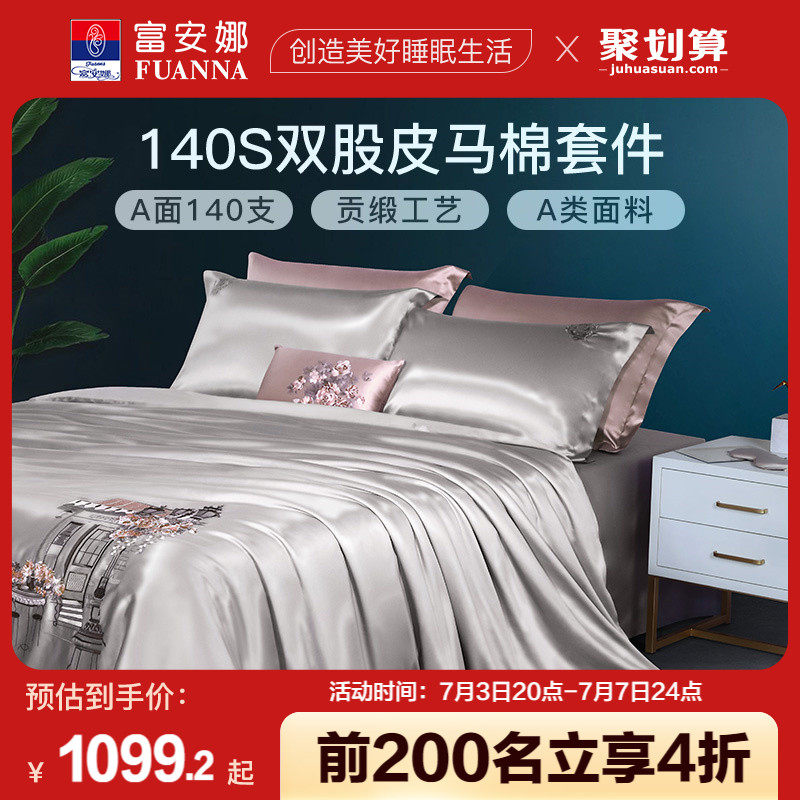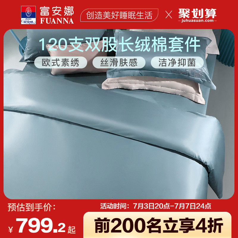 券 10元销量100富安娜家纺140S长绒棉四件套A类纯棉套件床单被套家用床上用品