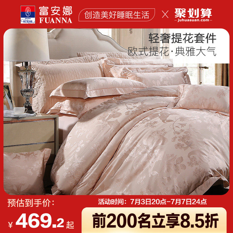 券 10元销量100富安娜家纺轻奢提花四件套涤棉被里少女心被套床上用品婚庆四件套