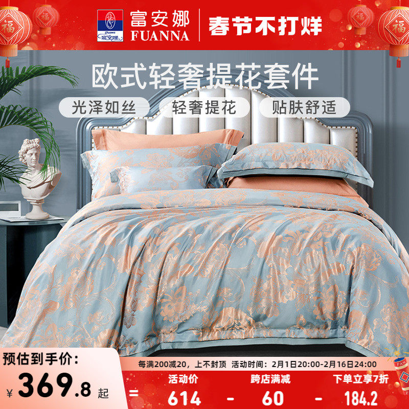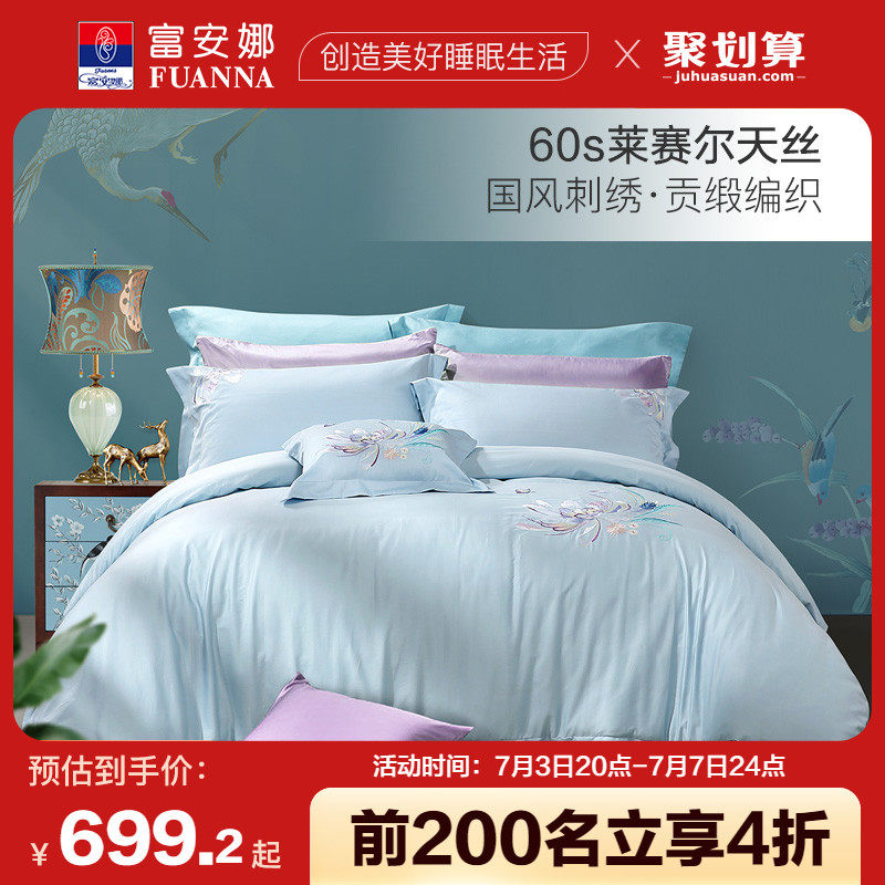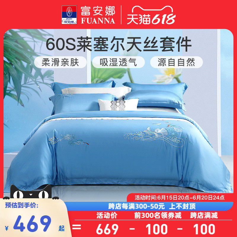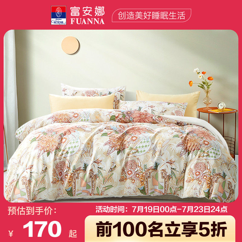 券 100元销量300富安娜家纺60支天丝四件套夏凉被床单被套家用床上被罩床上用品
