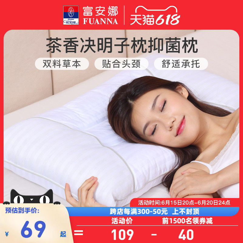 券 40元销量1000富安娜家纺决明子枕头护颈椎枕茶香颈枕学生枕芯宿舍成人单人枕头