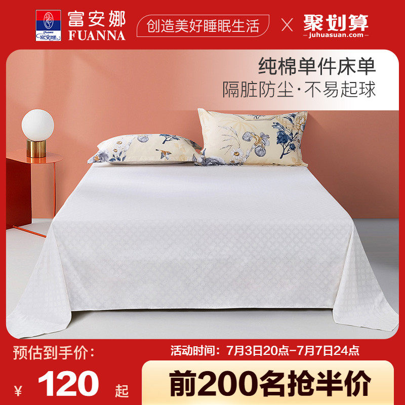 券 10元销量100富安娜家纺全棉床单纯棉抗菌床罩防尘单件床单四季单双人床上用品