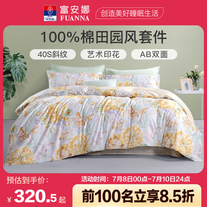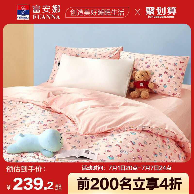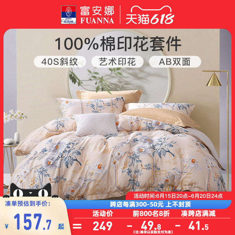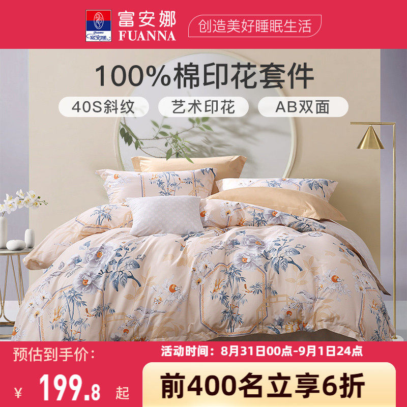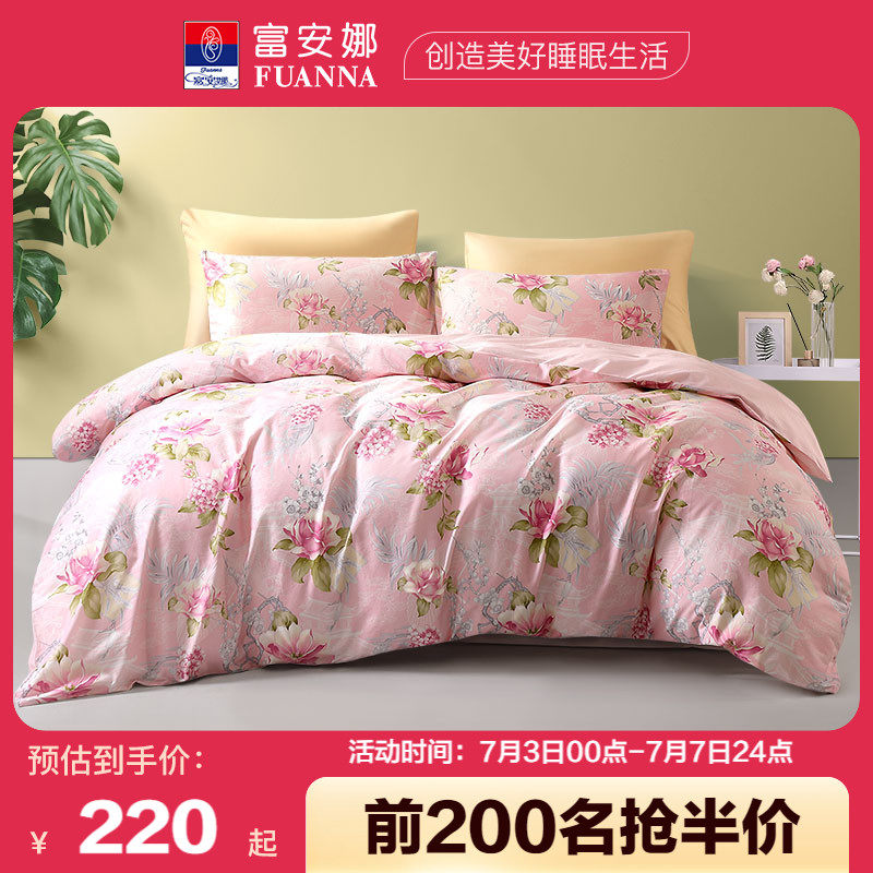 券 10元销量100富安娜家纺纯棉四件套全棉被套宿舍被子三件套春夏床上用品4