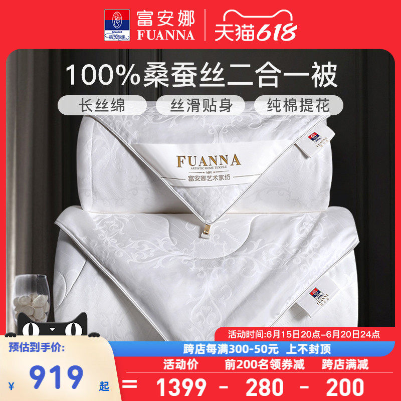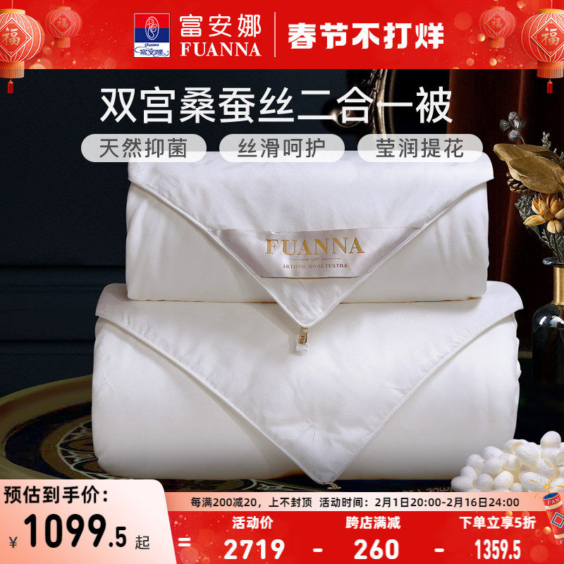 券 50元销量10富安娜蚕丝被100桑蚕丝 被子冬被二合一被芯春秋被保暖加厚子母被